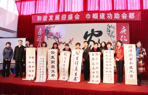 与会领导为村干部家属代表赠送书法作品