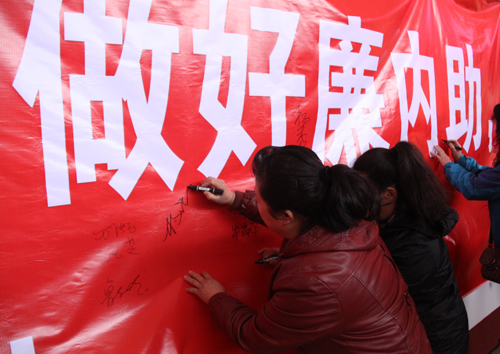 活动分为三个篇章:家庭篇、廉政篇、喜迎APEC篇,通过播放干部家属及基层村干部的承诺短片,让大家进一步了解了践行廉政承诺的深刻内涵;京东大鼓《廉政美名传》、女声独唱《清风明月长城长》等一个个廉政主题的节目让参加活动的人员在欣赏廉政节目的同时,更是上了一堂生动的廉政文化课。随着村干部家属代表郑重地宣读了廉政承诺,并在承诺墙前郑重地签下自己的名字后,也将此次活动推到了高潮。启动仪式上,怀柔镇政府领导、村干部及配偶代表们还收到了一份特别的“礼物”--由区文联书法协会书法家现场写下的廉政书法作品。号召村干部们以实际行动廉洁自律,自觉抵制不正之风,更好的为人民服务;号召“廉内助”们发挥正面积极作用,为构建和谐小家及和谐社会大家庭贡献自己的力量。