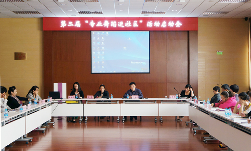 4月23日下午,第二届“专业舞蹈进社区”活动在北京市妇女儿童社会服务中心启动。中华女子学院相关专业师生、朝阳区及丰台区部分街道和社区负责人参加了启动会。