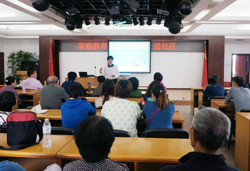 5月8日下午,北京市妇女儿童社会服务中心联合丰台区妇联、丰台区妇女儿童培训中心,在丰台区和义街道办事处共同举办“家庭教育进社区”亲子讲座,约100名6-12岁孩子家长参加。