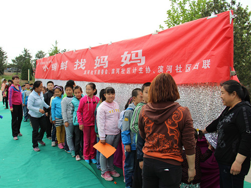 “我找到妈妈了!”平谷区滨河街道的孩子们欢呼着。为弘扬孝老爱亲的传统美德,营造和谐融洽的亲子关系,滨河街道社区在母亲节之际开展了以“感恩母亲--小蝌蚪找妈妈”为主题的寻找“最美家庭”活动。活动中,伴随着小蝌蚪找妈妈的故事拉开了帷幕,母亲和孩子分别站在彩色屏障两侧,使孩子无法看到母亲的容貌,母亲从屏障中间伸出自己的手,让仅有一屏障之隔的孩子在众多的手中找到自己母亲。孩子们经过逐一分析与抚摸,都一一找到了妈妈。随后通过和妈妈说悄悄话、送亲手制作的礼物等多种方式,孩子们向母亲表达感恩之情。