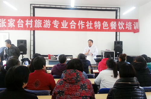 为整合旅游资源,提高民俗接待水平,带动妇女致富,张家台民俗旅游专业合作社本着合作经营管理、统一资源利用、共同发展致富的原则,把从事民俗接待的妇女组织起来,实行“六统一、三评优”管理标准,“六统一”即统一床上用品、统一洗涤服务、统一接待门牌、统一游客登记、统一社员名片、统一网站宣传,“三评优”即游客评价、卫生评价、特色评价。
