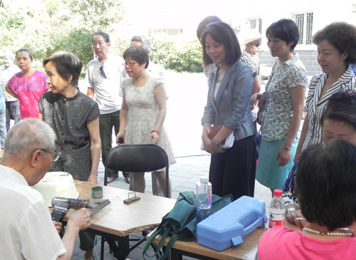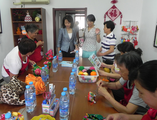 市妇联一行首先来到大峪街道双峪社区,同大峪街道副书记、双峪社区妇联干部及社区志愿服务队队长进行座谈,详细了解了大峪街道和双峪社区妇联社会工作的开展情况及社区连民心志愿服务队的活动情况,对连民心志愿服务队能够坚持18年为社区居民免费服务给予了充分的肯定。随后参加了双峪社区连民心服务队磨刀、焊接脸盆等专业便民服务活动,参观了“布韵传奇”巧娘工作室。市妇联领导充分肯定了“布韵传奇”巧娘工作室在带动妇女弹性就业方面的作用,并希望区妇联能够带领巧娘们走出去,向其他区县学习,开阔研究、开拓思路、创作出更好的产品,实现妇女的创业就业。