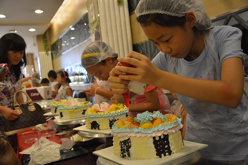 孩子们亲手制作蛋糕