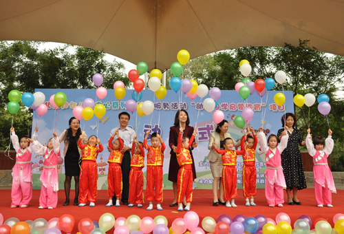9月28日,在丰台区五里店北里小区文化广场,举行了北京妇女儿童中心系列化社会服务活动--“幼儿国学启蒙教育”项目的启动仪式。此项活动由北京市妇女儿童社会服务中心、丰台区妇联和丰台区妇女儿童培训中心联合主办,丰台区人民政府机关幼儿园承办。北京市妇联副主席赵丽君出席项目启动式并讲话,北京市妇女儿童社会服务中心、丰台区妇联、丰台区人民政府机关幼儿园的负责同志以及幼儿园小朋友和家长近120人参加了活动。