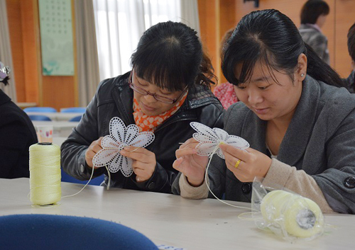 兰花指拿线,长短针交替,美丽的蝴蝶纹装饰花片就在一双双巧手下出现了。连日来,北京巧媳妇手工艺品专业合作社社长郑秋玲正在给妇女姐妹培训手工坐垫的编织技术。此次培训是怀柔区妇联、区妇女儿童活动中心“妇女创业就业行动”的重要组成部分,培训面向全区16个镇乡、街道的600余名居家妇女。目前已完成龙山街道、怀柔镇、庙城镇、雁栖镇、渤海镇等7个镇乡、街道的培训,培训人数230人。