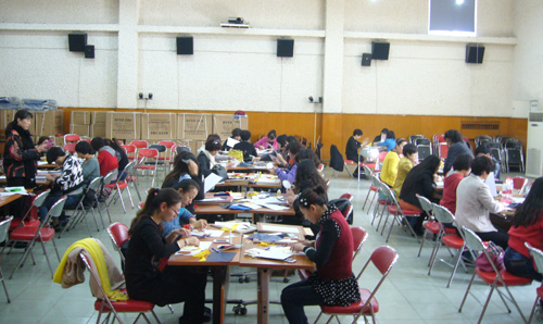 布艺堆绣比赛当天现场气氛热烈、紧张而又愉快,参赛姐妹们个个沉着机敏,手脚麻利。比赛开始后,大家全神贯注,飞针走线,争分夺秒地制作着自己的作品,有的还发挥丰富的想象力,对自己的作品进行了艺术加工和创作。2个小时左右,大家纷纷完成各自小组的参赛作品。参赛选手表示,这类活动不仅丰富了自己的业余文化生活,而且营造了和谐的社会氛围。