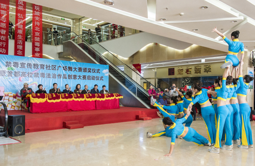 “禁毒宣传广场舞大赛”作为北京市社区居民禁毒知识普及项目的一项重要内容,于2014年10月正式启动。活动得到了广大社区居民的积极响应,短短一周时间报名参赛的广场舞队伍就达33支,大家自备服装道具,自编舞蹈动作,通过规定和自选的舞蹈来表现禁毒主题。交道口交东社区秧歌队、宜春里社区舞蹈队、日坛喜洋洋舞蹈等25支舞蹈队分获“最佳创意奖”、“最佳表演奖”和“最佳风采奖”。据悉,还将有36位禁毒公益讲师走进社区和学校宣传禁毒教育。