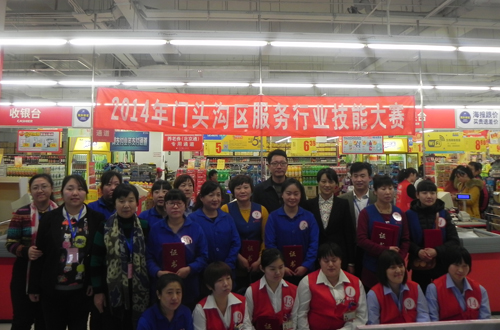 为进一步提高门头沟区服务业企业员工服务意识和服务技能,促进消费市场繁荣,并为区内各服务业员工搭建学习、交流、展示的平台,12月9日,区商务委、区妇联、区商联会联合举办了“2014年门头沟区服务行业技能大赛--收银员综合技能比赛”。来自门头沟区5家超市的15名女收银员参加了此次比赛。