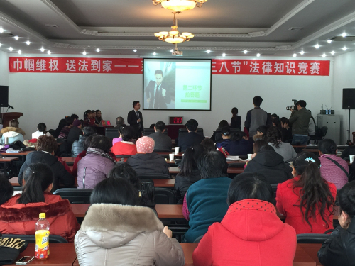 为深入学习贯彻党的十八届四中全会精神,进一步深化妇女法治宣传教育,强化妇女维权服务,在全面推进依法治国中发挥妇女“半边天”作用,3月4日,大兴区妇联以“三八”妇女节105周年活动为平台,以十八届四中全会主要内容为载体,联合区司法局举办了“三八”节法律知识竞赛。