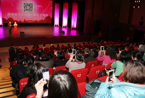 3月6日,西城区妇联在区文化馆召开了“魅力西城 爱住我家”--2015年西城区各界妇女纪念“三八”国际妇女节庆祝大会。大会设两个场次,主会场通过“家庭建设综述”、“家住西城”、“乐在西城”三个宣传片,结合西城区文化兴区战略,围绕“四个西城”文化建设部署,以家庭文化建设为重点,弘扬中华传统美德,倡导夫妻和睦、孝老爱亲、睦邻友善的家庭文化内涵,展示了西城区家庭文化建设的成果。会上还发布了33家“妇商惠”企业联盟成员名单和15个家庭文化圈,现场观众通过扫描二维码,添加了“西城女性”公众订阅号。市妇联主席马兰霞、西城区委领导分别在大会上致辞,充分肯定了西城区广大妇女姐妹在工作岗位上为北京市和西城区发展建设作出的积极贡献,并对全体女性致以节日的问候。