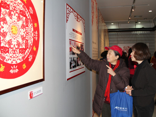 居民在场外服务区参观剪纸展