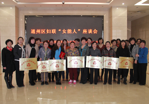 3月7日下午,通州区妇联召开了“女能人座谈会”。会上,区妇联为2014年新培育出的13家“妇女创业就业基地”授牌,为新评选的13名“妇女创业就业之星”颁发荣誉证书。