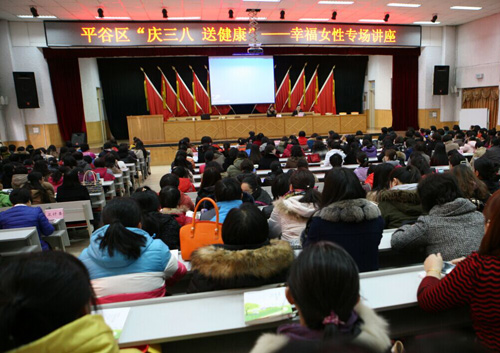 据悉,读书、征文活动是平谷区妇联实施幸福女性素质提升行动之一,区妇联还将依托以“妇女之家”为阵地,整合社会各界教师资源,针对不同女性及家庭培训需求,开展身心健康、生活技能、和谐关系、权益保护等成规模、成系列的培训活动,提升广大妇女感受幸福、创造幸福、传递幸福的能力。3月10日上午,区妇联在区委党校礼堂举办平谷区“庆三八 送健康--幸福女性”专场讲座,400名妇女聆听了来自北京协和医院妇产科副教授陈飞博士的讲座。