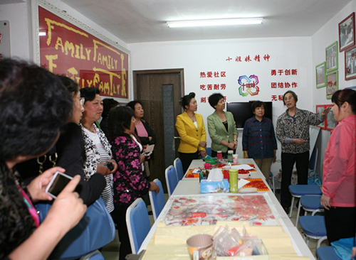 大家首先来到玉桥街道七巧娘工作室参观。工作室负责人向大家介绍了七巧娘工作室的运行情况以及活动开展情况,并带领大家实地查看了巧娘制作室和产品展览室。随后,参观团一行来到了玉桥街道玉桥南里南社区,参观“十姐妹”工作室并现场感受特色楼门文化。据“十姐妹”中的大姐介绍,自开展楼门文化以来,社区以楼门为平台,调动和发挥居民的主体作用,以楼门长作为楼门文化建设的牵头人,建立并完善了“一长五员”的长效工作机制,将楼门打造成为了邻里和谐的“立体四合院”。最后大家来到新通国际社区参观社会组织孵化基地。街道办事处通过创新社区社团组织孵化基地这个平台,更好地聚合了社会组织资源,培育和发展社会组织参与社会建设,并积极协助政府开展公共管理和公共服务,同时开展社区公益慈善服务和生活便利服务,使社会组织有人员、有阵地、有活动、有评估,促进了社区成员的自我服务、自我完善和自我发展。