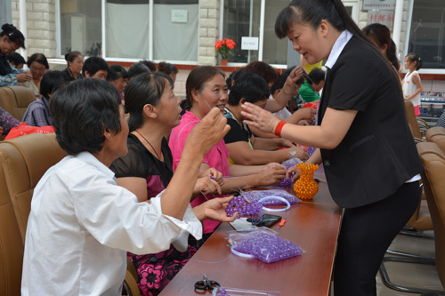 会后,北京巧媳妇手工艺品专业合作社社长郑秋玲为渤海镇妇女姐妹进行手工艺制作培训。