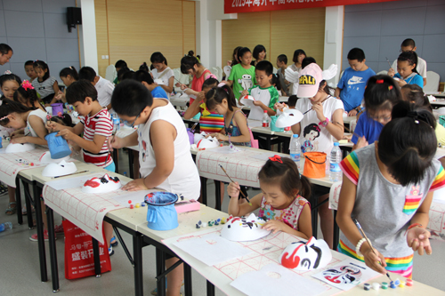 活动中,中国戏曲学院的戏曲专业老师先是向孩子们讲解了戏曲脸谱的起源、分类、艺术特色等小常识,让孩子们理解戏曲人物的个性特征,知道了脸谱有红、白、黄、黑、蓝、绿等颜色,每种颜色都有它隐含的意义,代表了人物不同的性格;还让孩子们欣赏了老师们准备好的一个个色彩艳丽、活灵活现的手绘脸谱。随后,孩子们在老师的指导下,用彩色颜料在空白的脸型模具上画出心目中京剧脸谱的样子,有画红脸关羽的,有画黑脸包公和张飞的,各式各样,虽然稚嫩但颇具童趣的脸谱在孩子们的笔下应运而生。