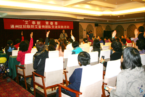 为了提高通州区居民对艾滋病的认识,提高防护意识,10月14日,通州区妇联防艾宣传队组织开展了“‘艾’奉献·青春季--通州区妇联防艾宣传团队交流实践活动”,区妇联聘请了通州区疾控中心性病艾滋病防治所李震老师为110名居民普及了防艾知识。