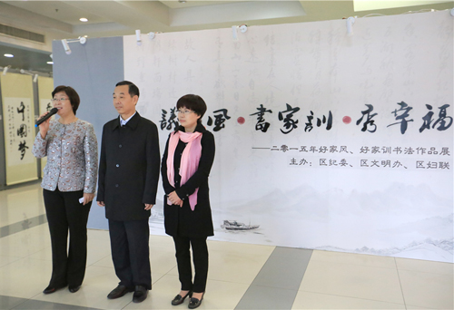 10月22日,由西城区纪委、区文明办、区妇联共同主办的2015年好家风、好家训书法作品展在区文化中心开展。区纪委、区文明办相关负责人,区妇联主席李高霞以及热爱书法艺术的各界群众、家庭代表参加了开展仪式。