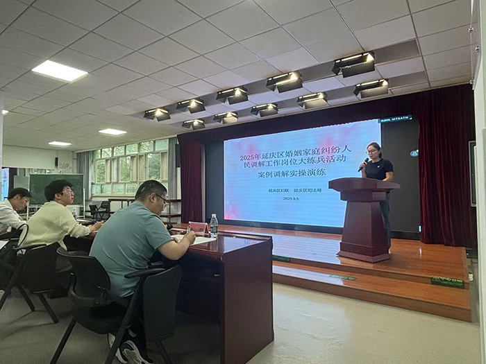 9月5日,延庆区妇联联合区司法局举办2025年延庆区婚姻家庭纠纷人民调解工作岗位大练兵活动案例调解实操演练。