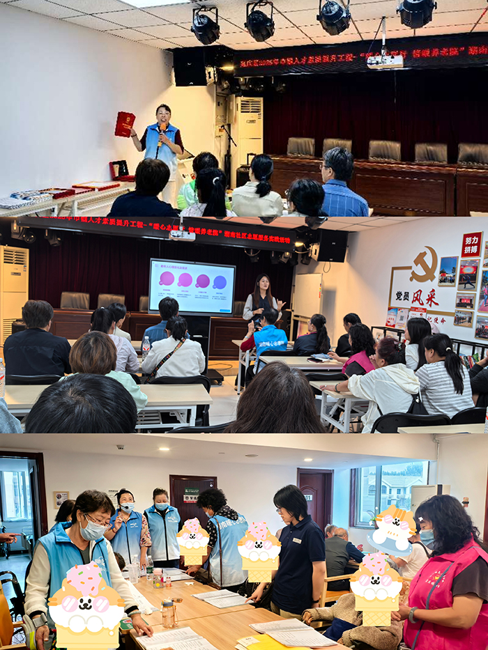 技能培训提升素养。开展为老服务养老照护专题讲座,老师围绕老年人生理和心理特点、基本护理技能操作规范、常见疾病与特殊需求护理方法、安全防范与应急处理措施等方面内容进行授课,增强了团队对为老服务工作常识和技能的认知和理解。