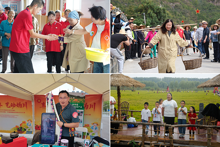 文化庆祝与宣传,丰富乡村精神生活。张山营镇妇联在辛家堡村稻田举办“道翔四季 艺韵辛家”稻田丰收节活动,吸引周边村民、游客及摄影爱好者600人参加活动。村民在稻田边开展推铁环、转呼啦圈等趣味活动,现场品尝“辛米”粥和“辛米”预售活动,共庆稻田丰收。千家店镇妇联以“下湾承知青,金秋庆丰年”为主题,结合百里山水画廊景观展示田园风光与农耕特色,让更多人感受农耕与知青文化,增强乡村认同感。