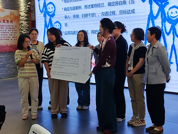 来自丰台区6个街道的妇联执委们结合培训内容,就工作中的重点和难点进行了分组研讨。培训通过案例情景展示实操环节,切实帮助妇联执委提升沟通服务能力。