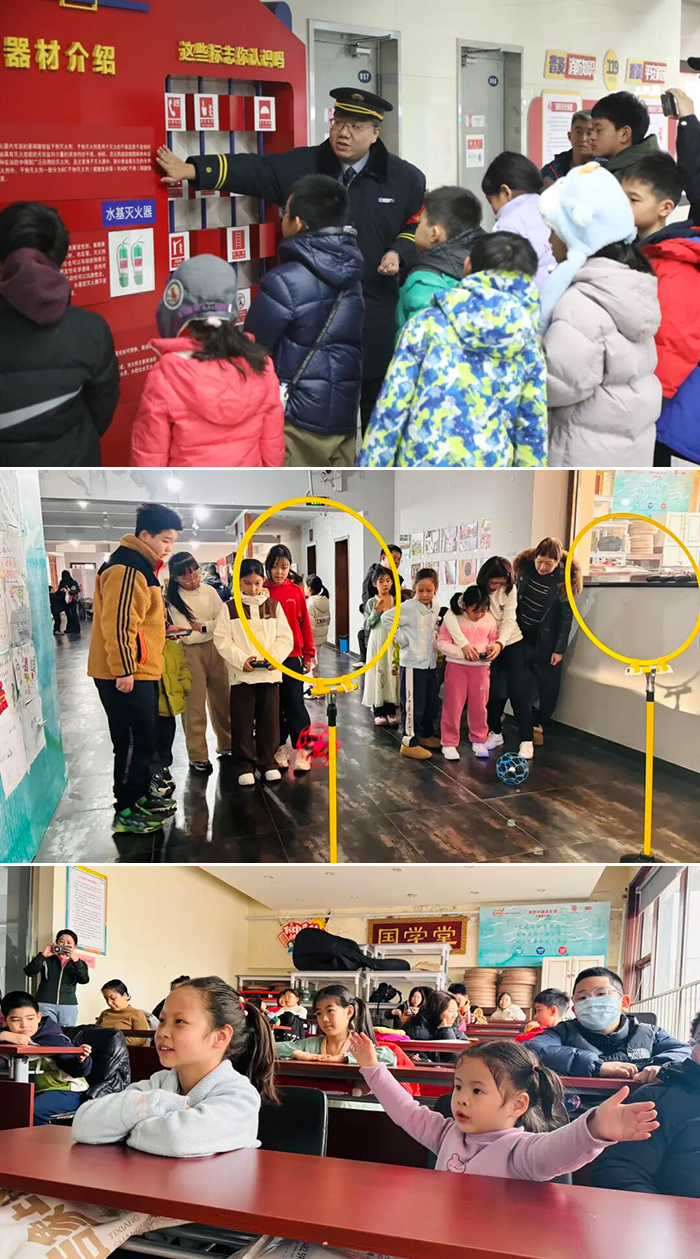 为了让安全教育真正“活”起来,在区妇联倡导的“体验式教育”理念指导下,朝外街道带领“少年团”走进宋家庄站,开启沉浸式地铁探秘之旅。孩子们围在安检机旁学习辨别违禁品,两两组队手持探测器体验“小安检员”;跟随值班站长学习应急标识和消防知识,掌握“提、拔、握、压”灭火器使用口诀;更与警犬“佩奇”零距离互动,直观感受轨道交通安防工作。这场探秘之旅,将反恐防暴知识从抽象概念转化为具象体验,实现了安全文明出行理念的“入脑入心”。