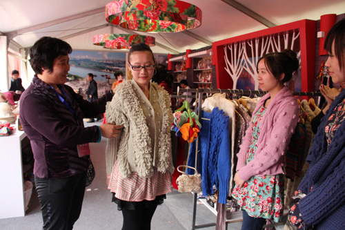 巧娘刘桂红编织的毛衫吸引了众多游客