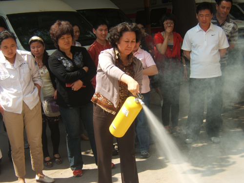 党员干部进行灭火器使用操练