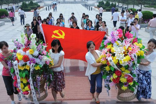 在伟大的中国共产党建党90周年之际,6月28日,海淀区妇联组织全体党员干部一行近40人前往河北乐亭县李大钊纪念馆、曹妃甸工业区开展“学前辈,增党性,当先锋”党日活动。