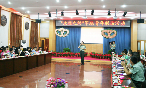 8月26日,由石景山区妇联与北京军区某部共同举办,70余名军地适龄青年参加的“玫瑰之约”军地青年联谊会,在鲜花、彩球营造的温馨浪漫氛围中举行。这是石景山区妇联针对部队任务重、驻地相对偏僻、与地方女青年接触机会少等实际,积极为部分官兵解决婚恋难问题组织的一次联谊活动。