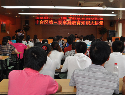 在各中小学开学前夕,丰台区妇儿工委办、区妇联在马家堡地区开展了一期家教知识大讲堂,邀请著名教育专家、全国家庭教育专家讲师团首批专家关鸿羽教授为该地区的100多名流动人口家长带来了一堂生动、实用的讲座。丰台区流动人口较多,家庭教育知识相对匮乏,此次讲座将先进而富有操作性的家教知识送到流动人口身边,受到了大家的热烈欢迎。