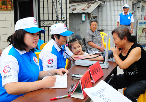 巾帼志愿者为社区居民测血压