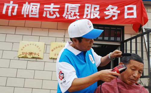 巾帼志愿者为居民理发