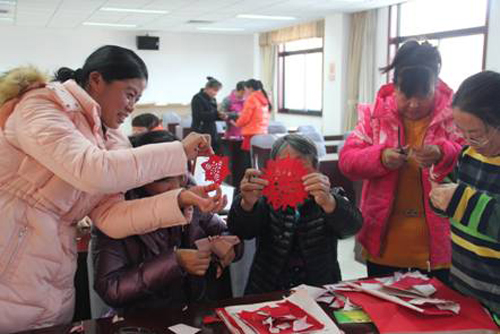 推开石城镇活动中心的大门,传来一阵阵的欢声笑语。参加活动的姐妹们手中拿着彩纸,挥舞着小小的剪刀,一会儿剪出一朵莲花,一会儿剪出一片祥云。伴随着授课老师的点评,不时将课堂的气氛推向高潮。