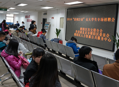 3月15日,为贯彻落实中央和北京市关于做好高校毕业生就业工作的文件精神,促进女性高校毕业生实现更高质量就业,为用人单位和大学生提供精细化社会公共服务,结合朝阳区功能定位和经济社会发展新常态,朝阳区妇联、朝阳团区委联合人力资源公共服务中心共同顺利举办了2016“春风行动”女大学生专场招聘会。