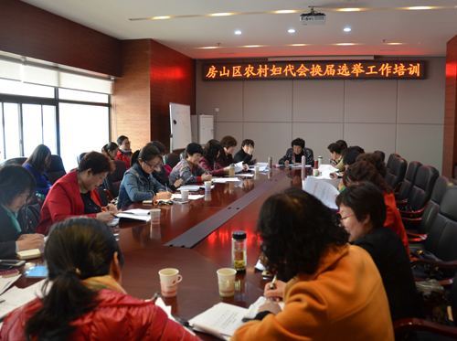 培训中,重点学习了《关于做好农村妇代会换届选举工作的意见》,房山区妇联明确要把“农村妇代会主任应是村党支部或村委会成员”,“确保每个村民委员会中至少有一名妇女成员”,“对于妇女成员,应当实行专职专选”,“妇女村民代表应当占村民代表会议组成人员的三分之一以上”作为此次换届选举的重要内容,抓紧抓好;以换届选举为契机,建立健全妇联基层组织,培养选拔优秀妇女干部,切实把妇联基层组织建设成为党开展妇女工作的“坚强阵地”和深受广大妇女信赖和热爱的“温暖之家”。会议要求,各乡镇街道妇联要提高认识,增强做好女性进村“两委”和农村妇代会换届选举工作的责任感;要加强领导,及时与组织、民政部门沟通协调,争取党组织重视和支持,加强换届工作指导;要把握重点,要切实把好妇代会主任能力关,把优秀女性选到基层妇联工作岗位上。