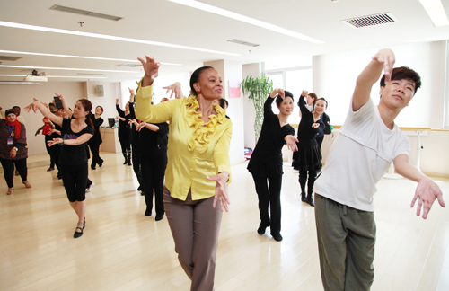 来访的妇女代表团在妇女儿童活动中心参观了面包花制作、中国结编制、厨艺、计算机、缝纫等女性创业就业课程,欣赏了脸谱彩塑与盔头制作、京剧沙龙、声乐、书法、剪纸、中国画、茶艺、扑克牌制作等中国传统文化艺术课程,观看了非物质文化传承项目“抖空竹”表演,舞蹈小教员课程。来宾们品尝了妇女儿童活动中心学员们亲手烹制的中国特色小吃,品鉴了学员们亲手沏泡的中国功夫茶,还饶有兴致地与学员们一起跳舞、走秀、写书法,并短短时间里学会了书写自己的中文名字。