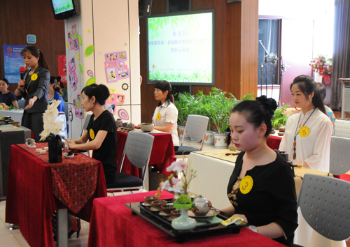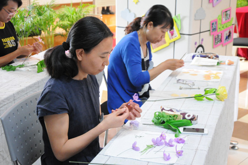 此次竞赛设有面包花制作、植物组合盆栽制作以及茶席设计三个比赛项目,以及现场pop海报制作表演展示,共有23人参加了竞赛和展示。面包花制作和植物组合盆栽制作是海淀区妇联的常年培训项目,旨在通过对本区城乡妇女开展手工技能培训及家政培训,促进妇女灵活就业。面包花制作、植物组合盆栽制作的参赛选手都来自区妇女儿童活动中心以及三八家务服务中心的优秀学员。茶席设计是茶叶销售环节的重要一项内容,高水准的茶席设计能够吸引顾客、促进销售;制作pop海报是各大百货商场、超市吸引消费者必不可少的重要途径,参加茶席设计比赛和的现场pop海报制作表演展示选手来自海淀区超市、购物中心和连锁药业等不同业态,他们经过层层选拔、过关斩将进入到决赛。