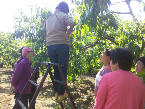 传授大桃套袋技术