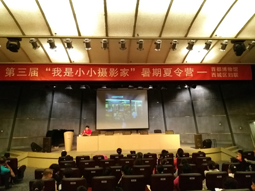 7月20日上午,北京普降暴雨,但是大雨阻挡不了孩子们爱好摄影的热情,首都博物馆多功能厅里仍然坐满了冒雨前来的家长和孩子们。由西城区妇联、西城区妇女儿童发展中心联合首都博物馆举办的第三届“我是小小摄影家”夏令营活动正式启动。
