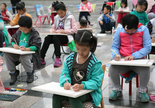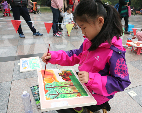 在人民公园绿树掩映下,90多个孩子拿着画板认真作画,家长在一旁观摩点评。“区妇联给我们提供这个展示的平台太好了,不但提高了孩子的画画兴趣,而且主题选得好,从小培养孩子保护家园环境的意识,我们觉得非常好。”