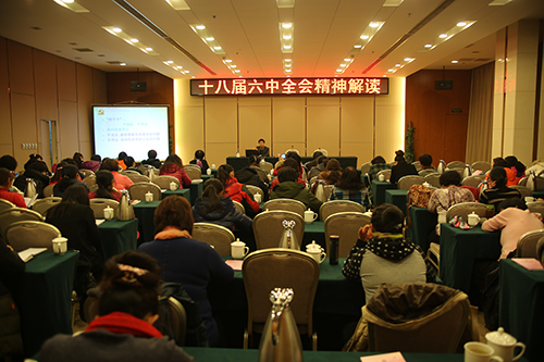 区妇联邀请中央党校马克思主义学院王虎学副教授,为妇女干部们讲授了《在新的历史起点上继续推进全面从严治党——十八届六中全会精神解读》的相关内容,王教授解读了全会主题和重要意义,分析世情、党情、国情,深刻阐述了全面从严治党的时代背景、全面从严治党面临的问题、全面从严治党的制度遵循等重要内容。