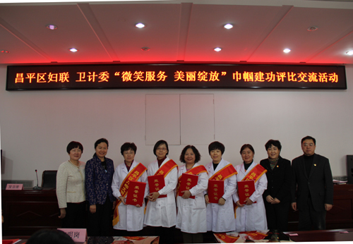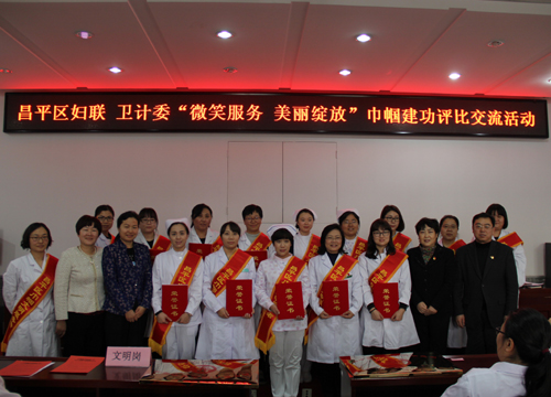 12月28日下午,昌平区妇联、区卫计委“微笑服务 美丽绽放”巾帼建功评比交流活动举办。区妇联主席隋彦玲、区卫计委党委书记石彩红出席活动,受到表彰的单位和个人以及来自全区卫生计生系统各单位的职工代表约80余人参加了活动。