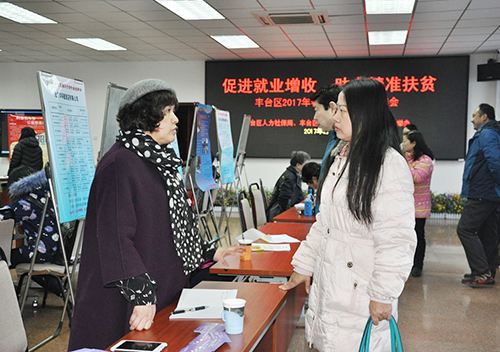 三八节前夕,为更好地满足农村困难劳动力和务工人员的就业需求和企业用工需求,切实把“春风行动”活动落实到位,丰台区妇联联合相关部门,在区人力资源公共服务中心服务大厅,举办了“促进就业增收,助力精准扶贫”为主题的春风行动专场招聘会。