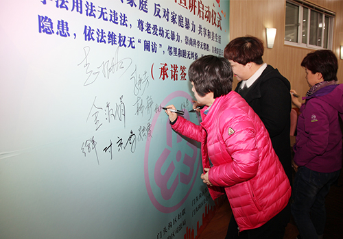 活动现场发放了维权法律宣传书籍和宣传册,同时,大峪街道发放了宣传材料和宣传品3000余份。参会人员和群众纷纷在承诺展板上签字,承诺做到“七防七无”,为消除家庭暴力,推进平安家庭、和谐家庭建设起到积极促进作用。启动仪式后,来自北京范翔律师事务所的专业律师、区公安分局和区综治办的工作人员分别进行了反家庭暴力法、禁毒知识及反邪教知识的现场宣讲。讲座内容丰富,姐妹们受益匪浅,纷纷表示当天的收获将为今后做好妇女维权工作起到很好的助力作用。此次活动拉开了门头沟区巾帼维权巡回宣讲的序幕,下一步讲师们将进一步深入到各个镇、街村居,开展法律知识镇街村居行。