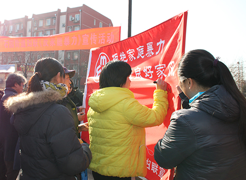 为进一步提高妇女维权意识,保障妇女权益,3月3日上午,顺义区妇联在石园街道启动“三八”维权月宣传活动,并在现场开展了以“反对家庭暴力,构建和谐家园”为主题的法制宣传活动。通过在小广场人员聚集区悬挂横幅、赠书、发放宣传资料等形式,向辖区居民普及“什么是家庭暴力”、“如何预防和制止家庭暴力”等知识,并耐心地解答了群众现场提出的有关家庭暴力、婚姻纠纷等问题,对如何加强夫妻沟通、改善婚姻家庭关系、科学教育子女等问题提出意见和建议。