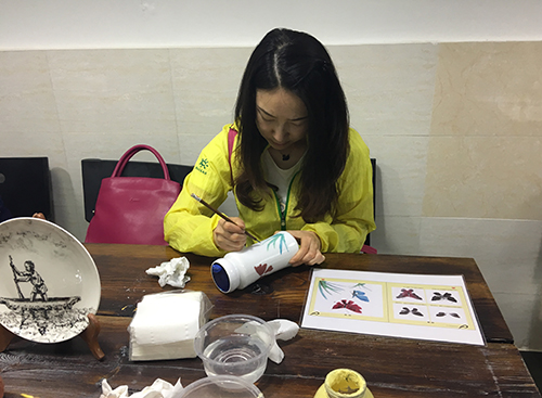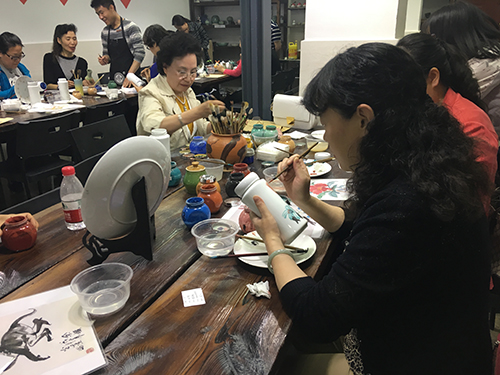 会后,代表们参观了京彩瓷博物馆,了解北京市非物质文化遗产京彩瓷发展历史,并体验京彩瓷彩绘技艺。