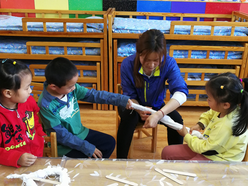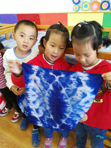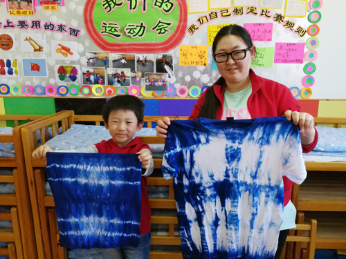 近日,第一堂儿童亲子课程——手工扎染,在展览路北营幼儿园开始,幼儿园大班的小朋友和部分家长、教师参加活动。